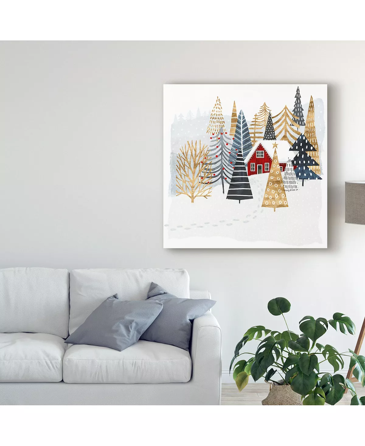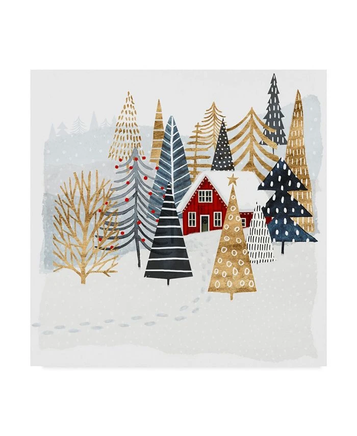 This ready to hang, gallery-wrapped art piece features a red house in the center of a forest landscape. Gallery-wrap is a method of wrapping an artist’s canvas around a hidden, wooden frame allowing for a frameless presentation.