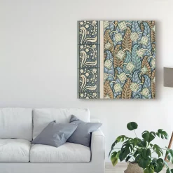 This ready to hang, gallery-wrapped art piece features a traditional floral pattern filling the frame. Gallery-wrap is a method of wrapping an artist’s canvas around a hidden, wooden frame allowing for a frameless presentation.