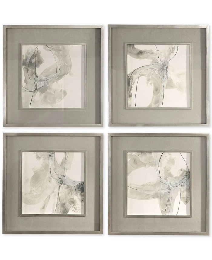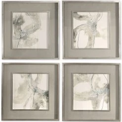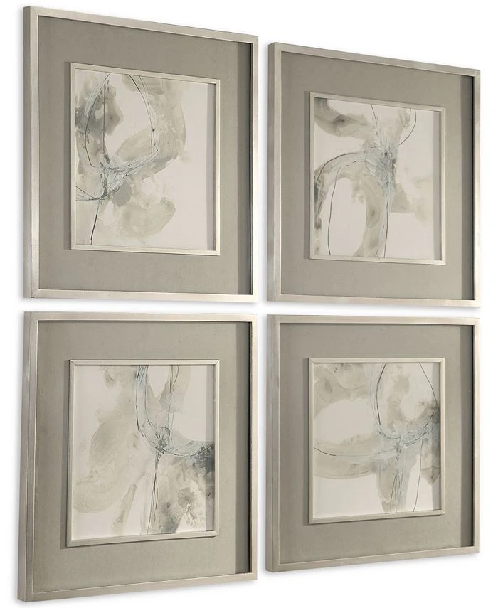 Arrange these Divination abstract art prints from Uttermost in a square or linear group on your walls. The flowy forms are rendered in shades of warm grey, charcoal and off-white, surrounded by warm grey mats and framed in silver-leaf.